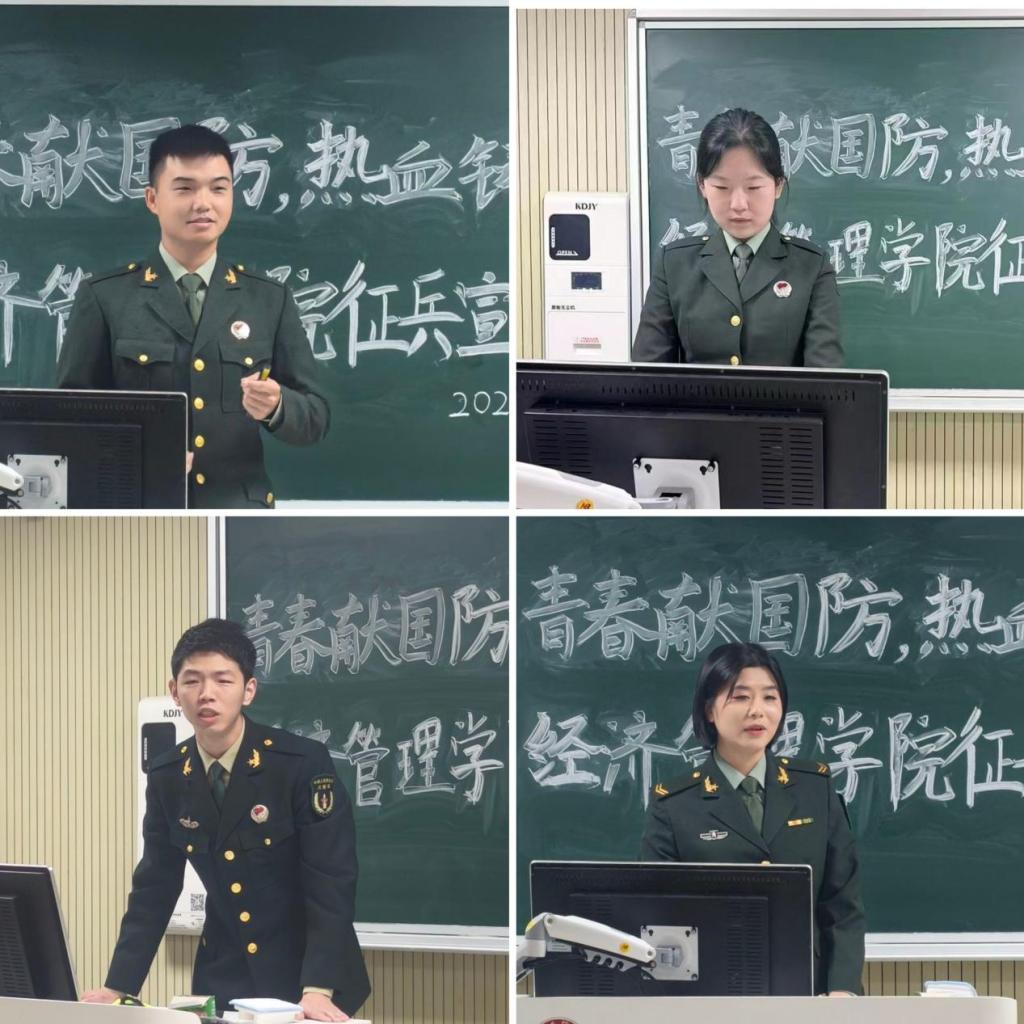 本次宣讲活动邀请校征兵宣讲团四名宣讲员,围绕学校征兵工作安排部署、入伍基本流程、大学生应征入伍条件和优惠政策等方面内容进行了详细的讲解,并以生动的案例展现了军旅生活对个人意志品质和综合能力的锤炼。重点讲解了同学们普遍关心的学业保障、经济补助、考研升学、公务员招录及退役安置等方面的优惠政策。在互动环节,四名宣讲员对同学们提出的各类问题给予了耐心细致地解答,现场气氛热烈,掌声不断。