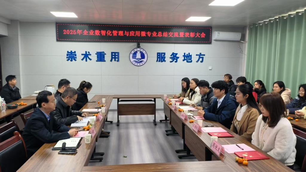 1月10日上午,我院企业数智化管理与应用微专业总结交流暨表彰大会在思贤楼507召开。西安瑞百思科技有限公司总经理石栋彬、校园负责人熊琳,新道科技股份有限公司校企合作经理谢磊,我院院长刘辉、副院长杨嘉歆,外聘教师代表及微专业全体学员参加会议,会议由我院副院长刘晓科主持。